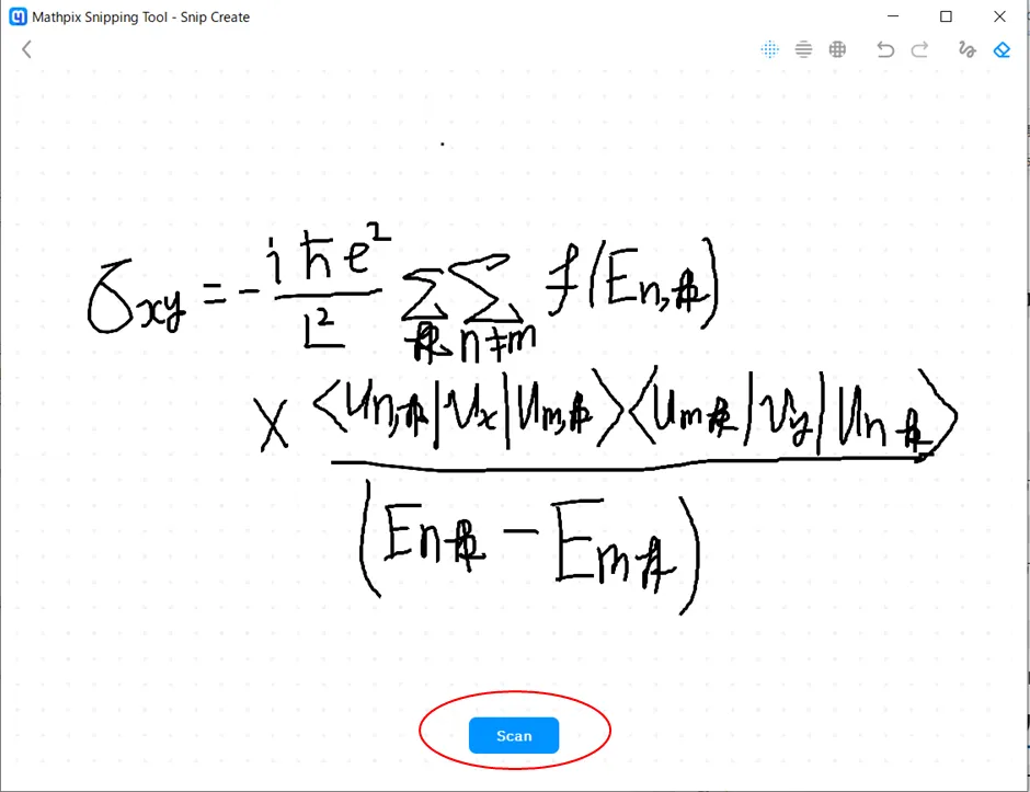 パソコンのスクリーン上の数式を読み取りたい場合は,一番左のアイコンをクリックすると,snipping画面が出てきます.スクリーン上の該当部分をsnipすることで,数式のインプットをします.
