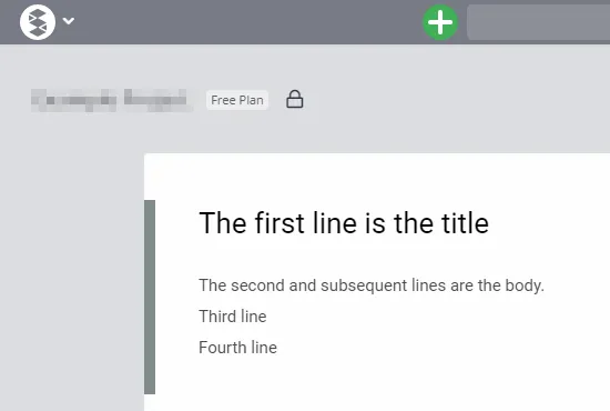 The first line is the title, and the second and subsequent lines are the body. The title line can be left blank. However, as it will become the heading in the page list screen, it is recommended that you write something in it for easy location.
