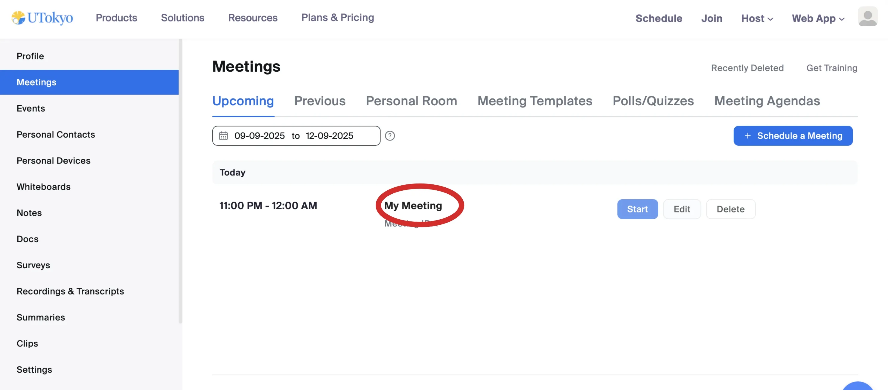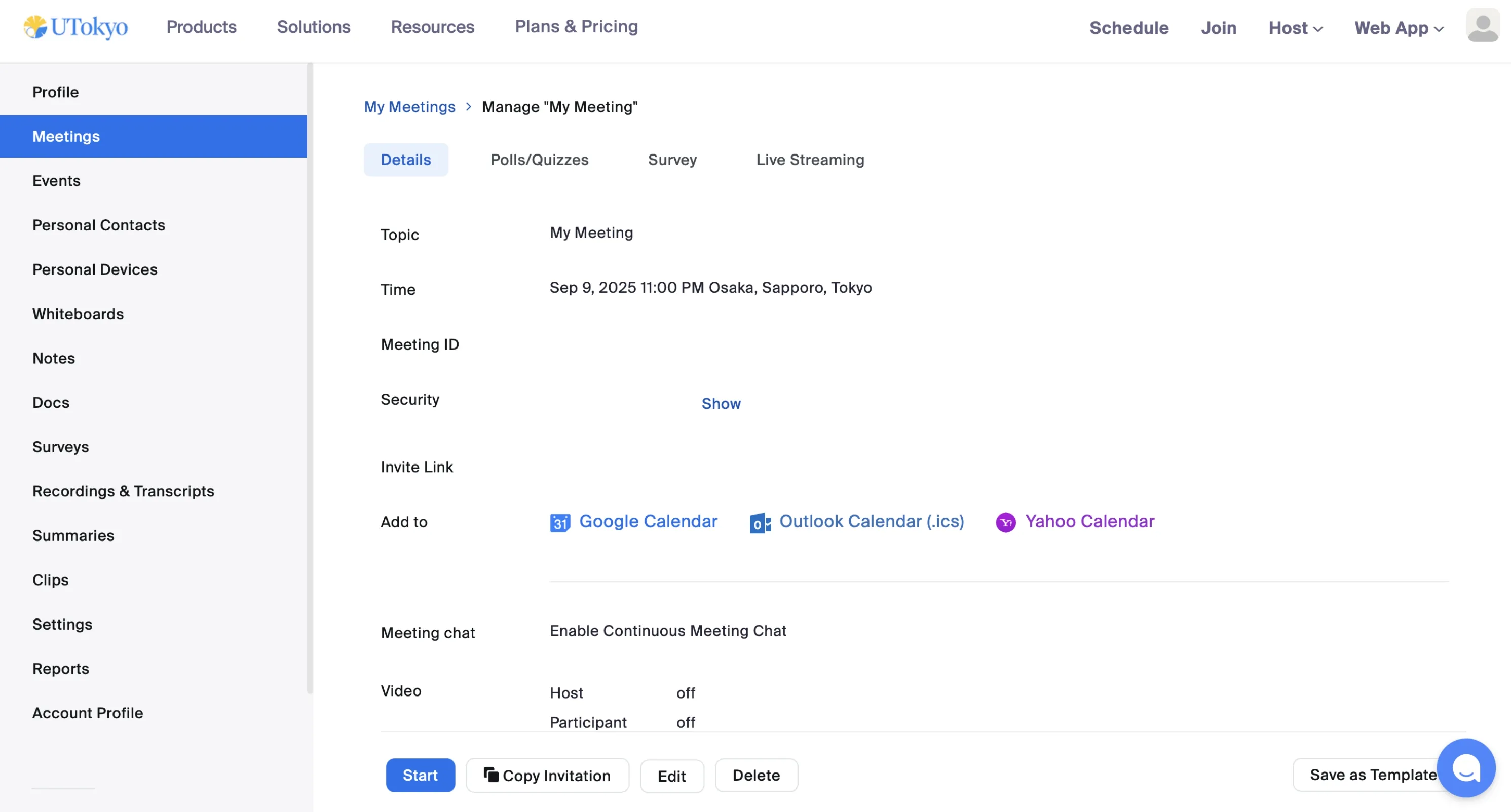 This page explains in detail how to review and change meeting settings and how to delete meetings. Some operations can also be performed through the Zoom app, but others require the web browser. Here, we primarily describe how to operate from the browser.