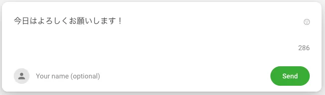 質問・感想は匿名で送信できますが,名前を入力したい場合は,テキスト入力欄右下の「Your name (optional)」の欄を使ってください.ここで入力した名前は,他の参加者にも共有されます.