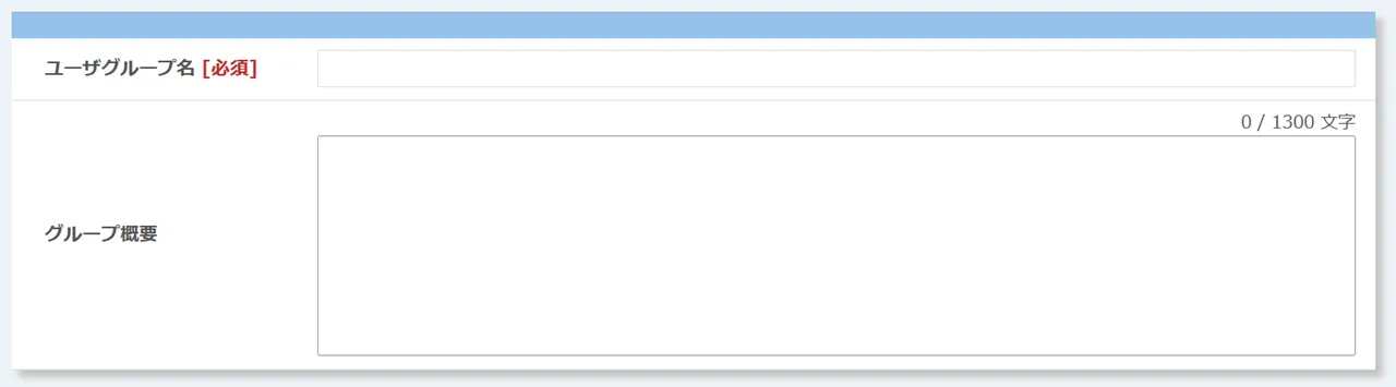• まず,「ユーザグループ名」と「グループ概要」(任意)を入力してください.これらの情報は,後からユーザグループを区別する際に使用します.